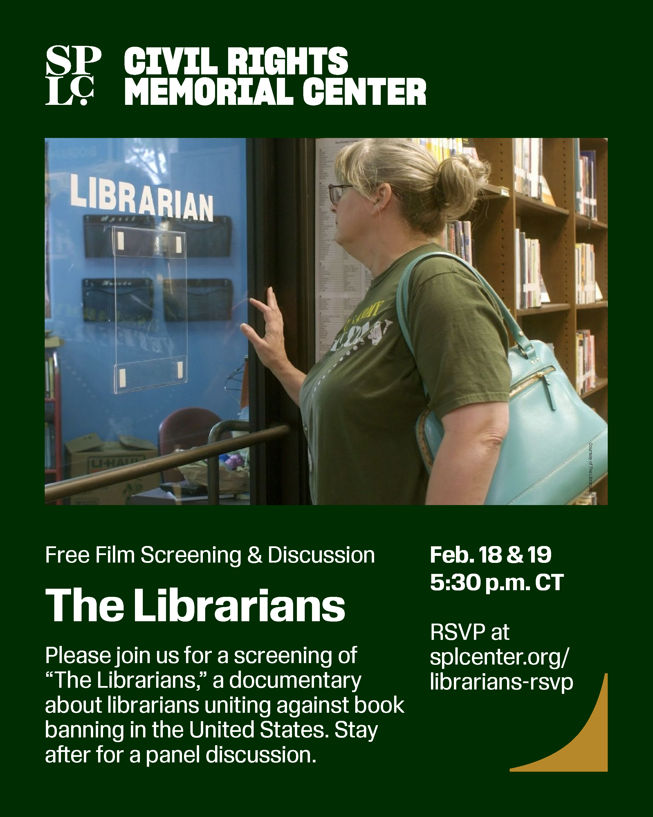 Wednesday, February 18, 2026 at 05:30 PMCival Rights Memorial Center in Montgomery, AL0 RSVPsThe Librarians - Free Film Screening